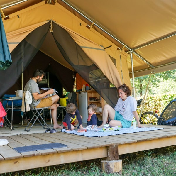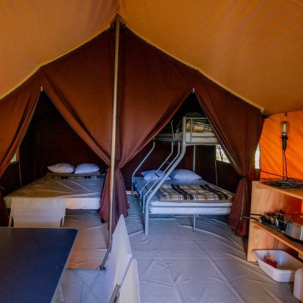 Lust auf Komfort, ohne auf die Authentizität des Campens zu verzichten? Unsere voll ausgestatteten Chalets sind bereit, Sie zu empfangen. Mit der Familie oder mit Freunden müssen Sie nur noch die Koffer abstellen (und die schöne Aussicht von der Terrasse aus genießen…).